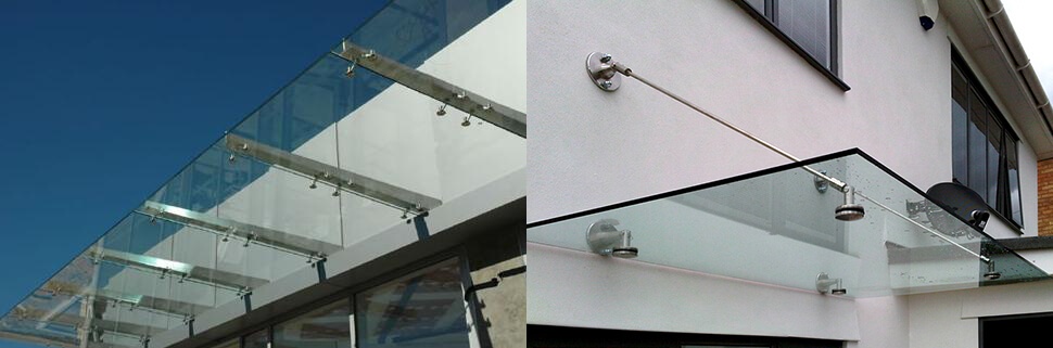 Для изготовления стеклянного козырька используют многослойное стекло с пленкой (триплекс) толщиной 10-12мм. Стеклянное полотно изготавливают с необходимой обработкой под крепление фурнитуры. Триплекс является оптимальным выбором для изготовления козырьков из-за своей прочности и абсолютной безопасности при эксплуатации. В случае если стеклянное полотно треснет или разобьется, защитная пленка между стеклами триплекса удержит от падения полотно козырька и тем самым обезопасит находящихся под ним людей.