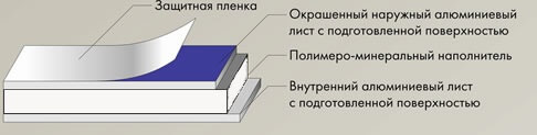 Алюминиевые композитные панели (Alucobond) состоят из 2 наружных листов алюминия толщиной от 0,21 до 0,5мм и внутренним слоем из минералосодержащего композитного материала. Наружный слой композитной панели покрывается устойчивым к ультрафиолету и агрессивным к воздействию окружающей среды покрытием PVDF. Задняя сторона композитной панели покрывается защитным антикоррозионным слоем грунта. Надежность покрытия позволяет применять данный материал в различных климатических условиях при температурах от -50°C до +80°C.
